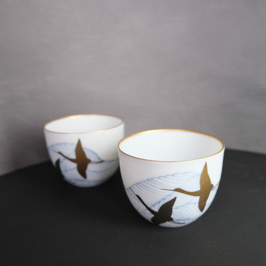 Vintage KUTANI ware TEA CUPS with lids (set of 2, Box) | 湯呑み(箱入り大小セット)
