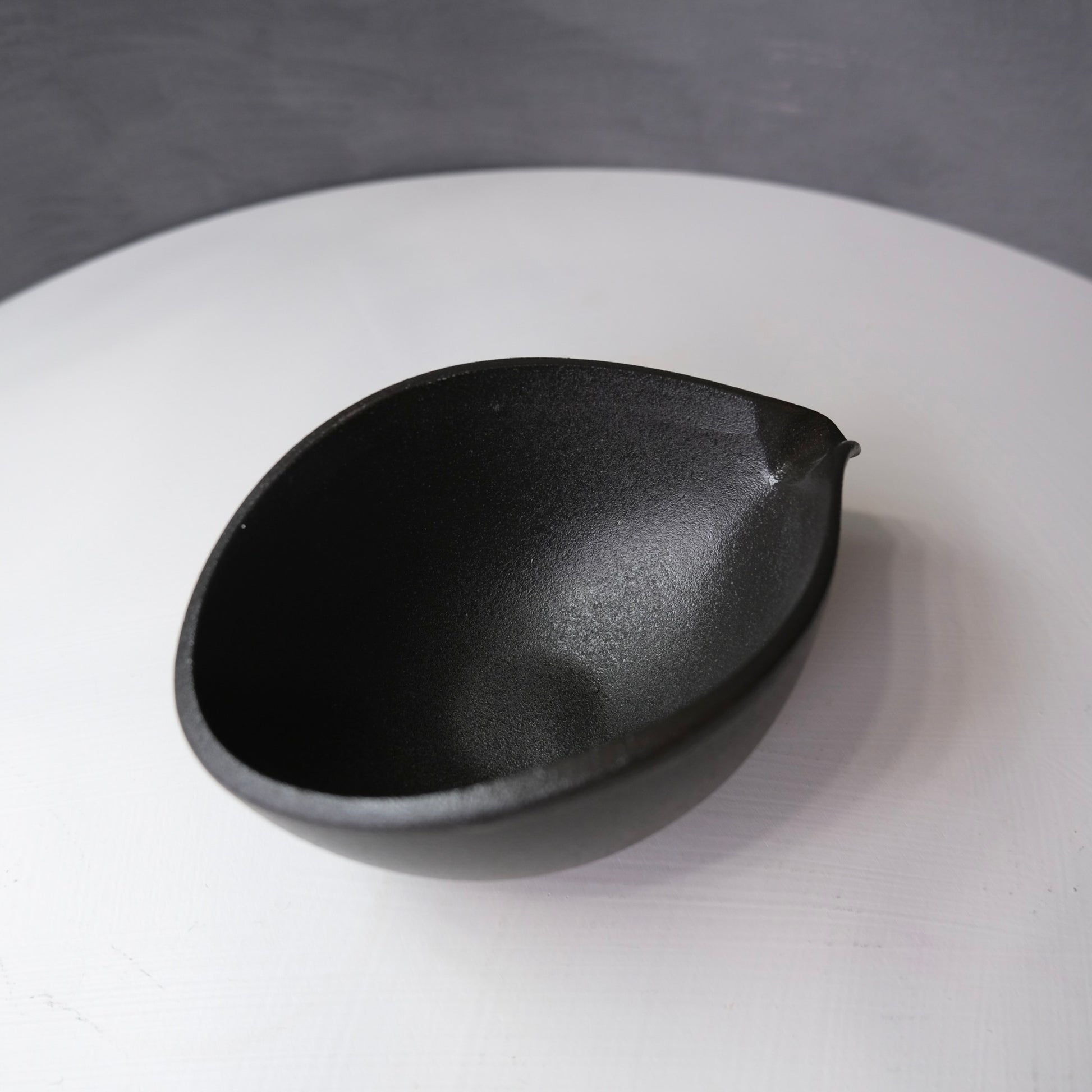 The ceramic black matcha katakuchi bowl. The handmade process ensures that every bowl is unique. Made in Japan.