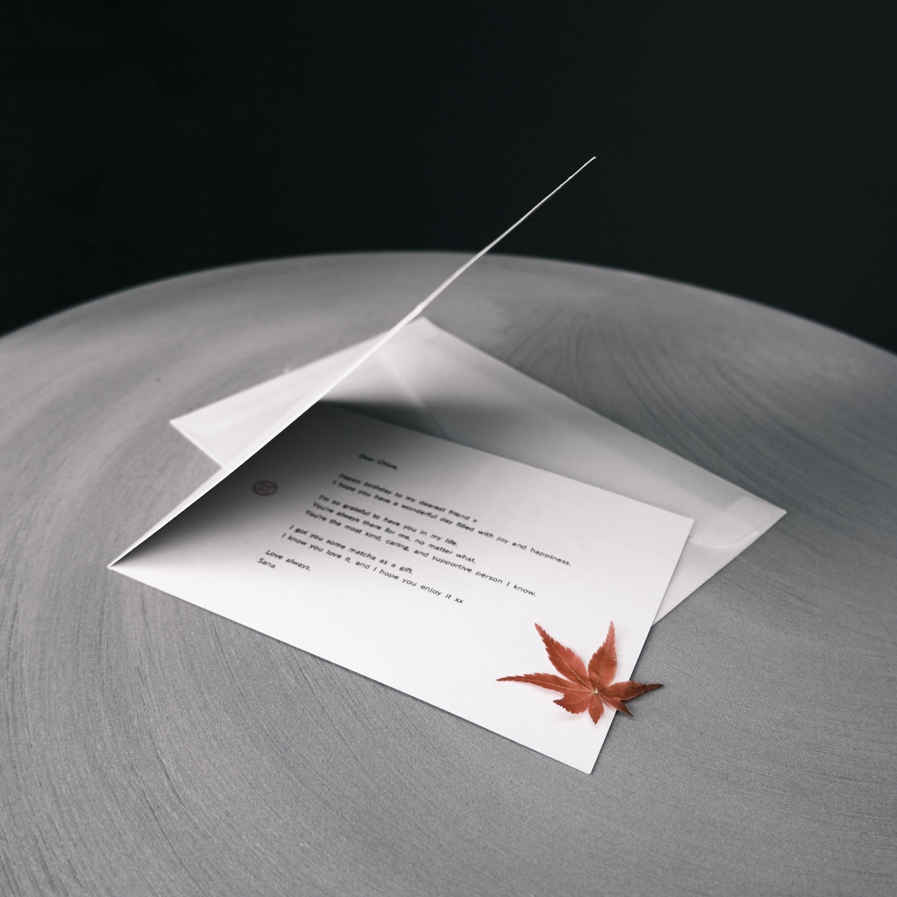 |こちらのカードはご自身でカードを書きたい方に最適です。他の商品と同様に封入してお届けします(写真はギフトオプションの印刷サンプルで、こちらはメッセージはない状態でお届けします)