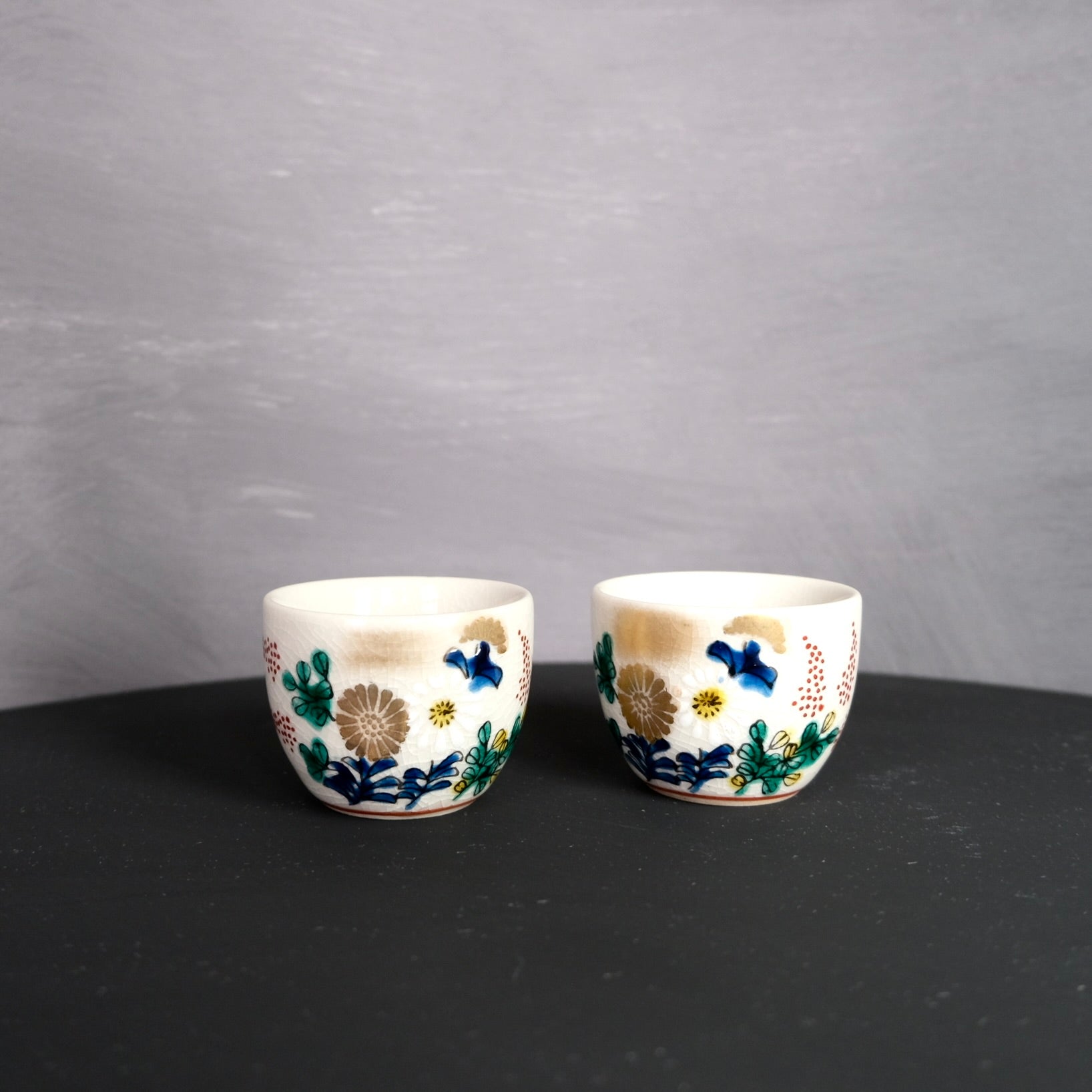 Vintage KUTANI ware OCHOKO x2 | 九谷焼 おちょこ